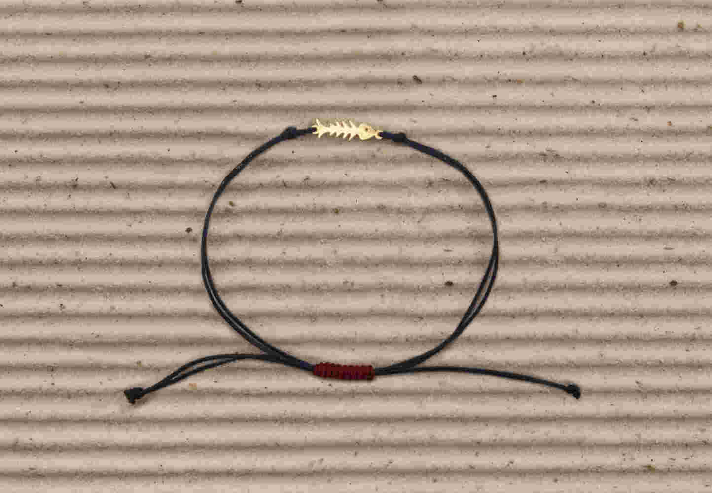 Gold fishbone bracelet with cord